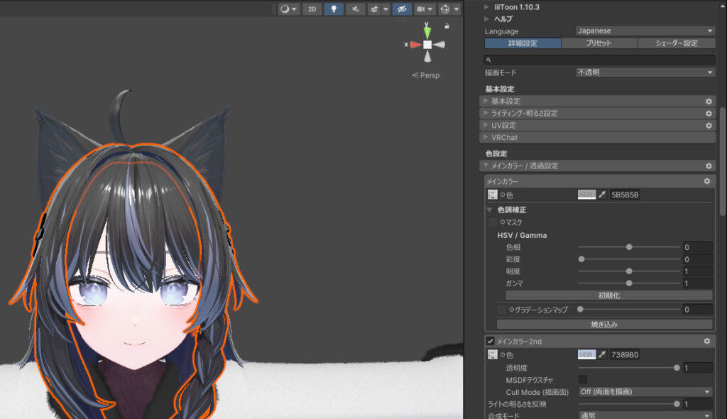 1.髪のマテリアルの Main Color